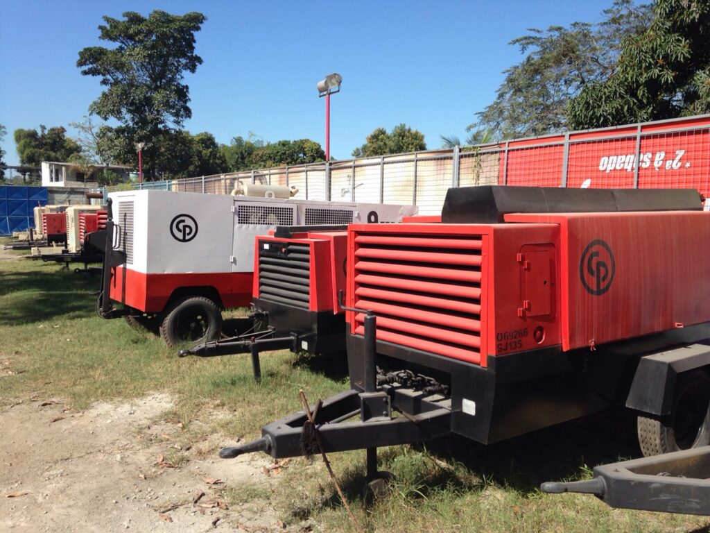- Compressor de ar à diesel: utilizado para jateamento abrasivo, pinturas industriais, demolição, abertura de canaletas para tubulação.
